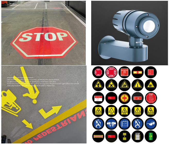 - Utiliza tecnología LED para proyectar señales en superficies, garantizando alta visibilidad y menor desgaste.